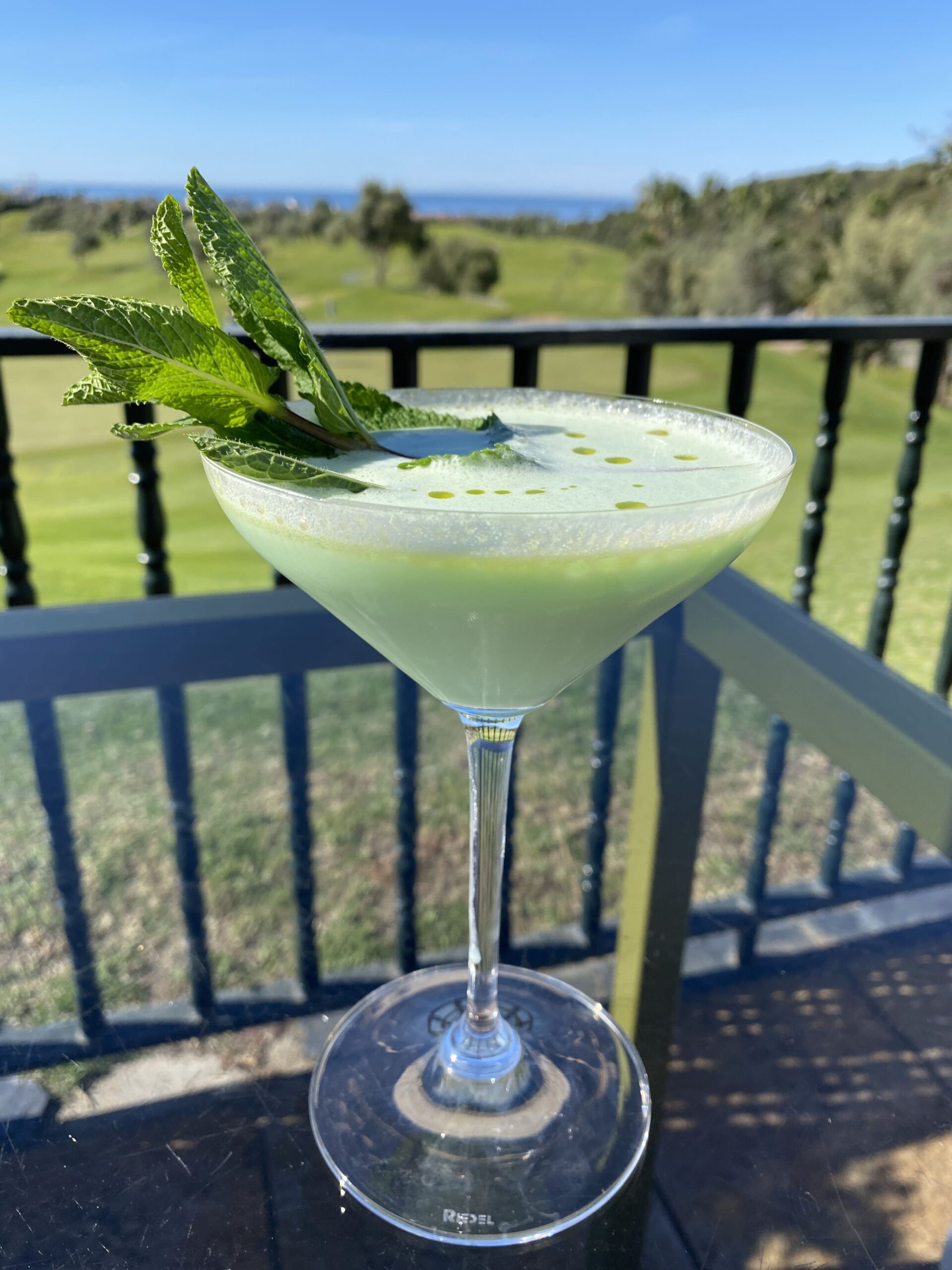 El Olivo: Nuevo cóctel diseñado para nuestro Restaurante El Olivo, inspirado en las colinas verdes de nuestro campo de golf. Incluye whisky irlandés, crema batida, licor de crema de menta y hoja de olivo y menta fresca para decorar.