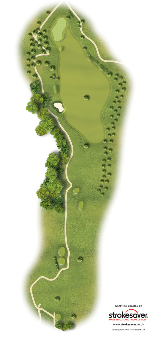 Green: Un verde pequeño y estrecho, con mucho movimiento y bien protegido por un bunker frontal. Ha de concentrarse en calcular la longitud no tanto en la dirección.