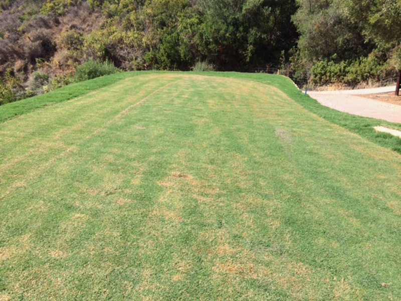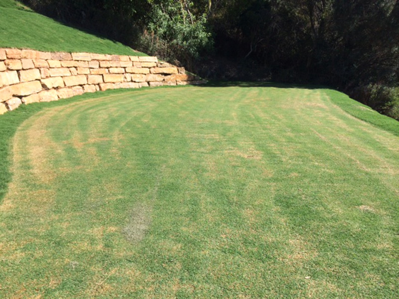 Es un placer anunciar que hemos terminado los trabajos de reforma de los tees de caballeros y profesionales en el hoyo 3 par 3. Los trabajos se comenzaron debido a los movimientos de tierra debajo de los tees originales permitiéndonos abordar el problema continuo de que estos tees fueran demasiado pequeños para el número anual de jugadores de nuestro campo. Decidimos hacer los tees más grandes moviendo tierra de la ladera detrás del tee de los caballeros y bajando los tees de profesionales 3 metros más abajo de forma que ambos tees tuvieran más sitio. También se construyeron dos muros de contención, uno debajo de los tees de caballeros para prevenir cualquier movimiento de tierra adicional y uno debajo de los tees de profesionales y detrás de los tees de caballeros. Se utilizó un tipo nuevo de bermuda llamado “Celebration” para cubrir de césped los tees nuevos. El nuevo césped bermuda ya se ha cortado con forma dos veces y se está fijando bien. Planeamos abrir los nuevos tees para el juego antes del final de agosto, a tiempo antes de la siguiente temporada alta. Esperamos que todos nuestros jugadores que nos visiten en el futuro disfruten de estos nuevos tees en el hoyo 3.