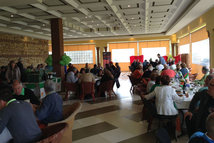 Más de 80 jugadores disfrutaron el martes 17 de marzo 2015 en el torneo anual San Patricio de Marbella Golf Country Club. Todos los participantes lo pasaron genial en el torneo formato Texas Scramble y disfrutaron de la barbacoa ya tradicional estilo irlandés / americano con cerveza Guinness de grifo gratis. El evento fue amenizado por “Stelvis” después de la comida con muchos socios bailando la tarde. El evento culminó en el concurso de chipping que se organizó desde la terraza grande hacia el hoyo 18 con la posibilidad de ganar un Putter Cadence de Ping esponsorizado por la Academia de Marbella Golf. Gary Brown fue el afortunado en ganar este concurso, organizado por nuestro Profesional Monty Bordelon, haciendo un “chip” que se quedó a 60 centímetros del hoyo. El torneo de este año se organizó conjuntamente con Sala Group Golf, que patrocinó el premio al jugador mejor vestido. Patrick Jones tuvo el honor de ganar la bolsa de golf Ecco. Nos gustaría también dar las gracias a otros patrocinadores que colaboraron en el evento; The Gecko Pro Tour, Bluewater Marbella y MLS Legal. Los ganadores del torneo fueron: Equipo ganador: Chas Lynch, Paul Dunford, Jim Robertson y Grant Comley Equipo segundo: Jim Bance, Westey Wray, John Dickinson y Ben Bajrami Equipo tercero: Tav McDougall, Bill Daniels, Joe Greatbatch y Mitch Drive más largo de señoras: Audrey Gibson Bola más cercana de señoras en el hoyo 3: Connie Draddy Bola más cercana de señoras en el hoyo 11: Anna Allen Bola más cercana de caballeros en el hoyo 9: David Currie Bola más cercana de caballeros en el hoyo 16: Westey Wray ¡Esperamos verles a todos de nuevo en el evento del año que viene! Almuerzo con Barbacoa Ganadora Bola más cercana Señoras hoyo 11 Anna Allen Concurso de Chipping desde la terraza Bailando con Stelvis Disfrutando del día, Doug Derbyshire y Pat Jones Ganadora Drive más largo Señoras hoyo 7 Audrey Gibson Mejor vestido Pat Jones Socios disfrutando la barbacoa Socios disfrutando del día Sres. McDonalds y Sres. Cullens Equipo ganador con Presidente y Vice Capitán