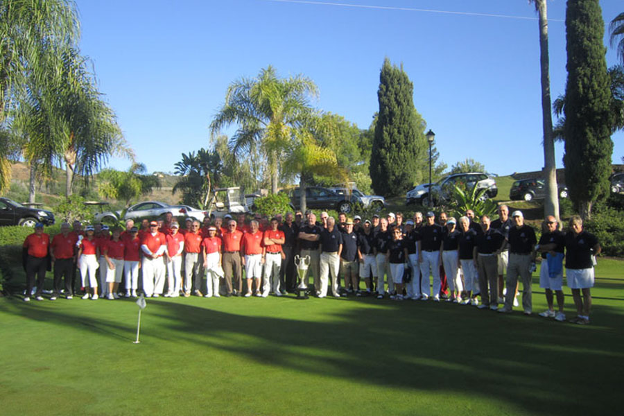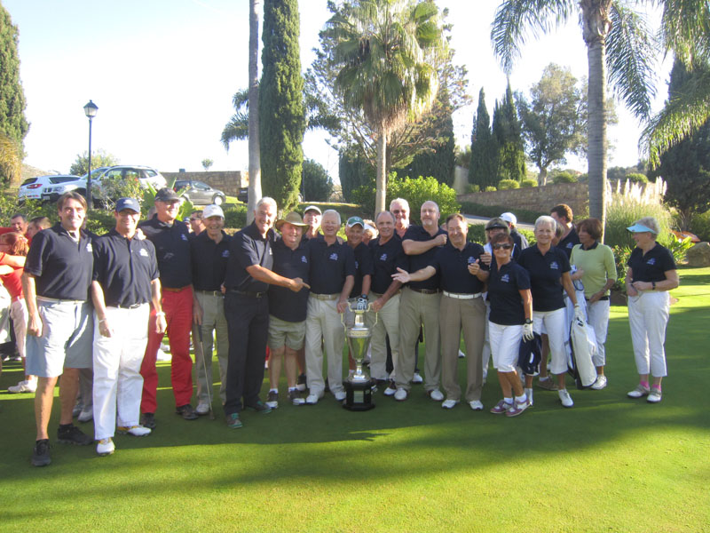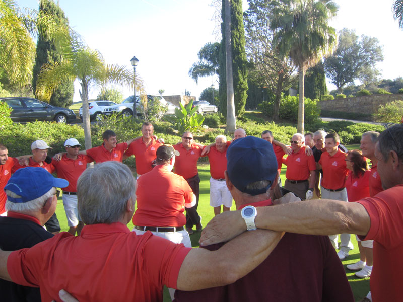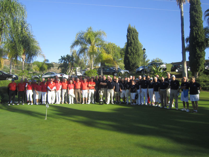 El 10 y 12 de noviembre, los socios de Marbella Golf Country Club disputaron su Torneo anual “Ryder Cup” con el Equipo del Presidente compitiendo contra el Equipo del Capitán, con un total de 60 socios participando. El primer día se jugó formato pareja mejor bola y el segundo día individual. El equipo del Capitán, todos ellos uniformados con sus polos azules marinos, ganó el trofeo y celebraron su victoria con el Equipo del Presidente, ellos a su vez con polos de color naranja, disfrutando de tapas y bebidas en la terraza grande de la casa club. 1er Día: Los dos equipos preparándose para jugar Equipo del Capitán preparándose Equipo del Presidente preparándose 2º Día: De izquierda a derecha: Ian Jarvis, Pat Allen, Jim Kalima y Liam Gibson Los Capitanes Stuart Patterson y John McNamara Ganadores: Equipo del Capitán